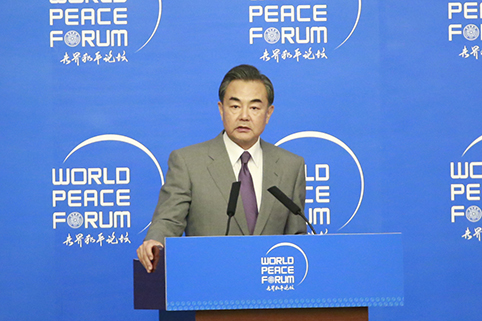 外交部长王毅在论坛午餐会上发表演讲。记者 张宇 摄
