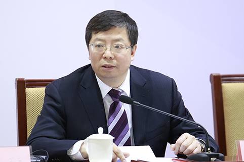 教育部副部长郝平致辞。记者 张宇 摄