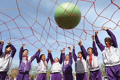 体育是附小的核心课程,学校提出“每天体育‘三个一’,健康工作五十年”的倡议,正是基于实践乐动平台“为祖国健康工作50年”的教育理念,传承马约翰教授“强迫体育锻炼”的体育精神。在附小,每周五天,天天有体育课,每天早上一个晨练微课堂、上午一个健身大课间。在每周的体育课上,除了常规的达标项目之外,还安排一次体育运动项目自选。体育教师们发挥自己的专长,以项目推进的方式,促进学生爱上体育,轮滑、板球、棒球、足球等十余种项目,供孩子选择。每周在同一时间,学生打破班级限制,根据爱好组成新的班级。每个清华附小学生,至少熟练掌握两个运动项目。学校特意拿出1节课开展足球专项训练。2014年附小举办了自己的“世界杯”,每个班都有自己的足球队,代表一个“国家”参赛。