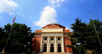 | 大礼堂下方上圆、庄严雄伟,既寓含中国古代天圆地方的自然哲学观,也融入了清华人“坚定朴实、不屈不挠”的卓越品格。 内中高悬着一块“人文日新”的匾额,这正是清华学风的一种凝炼和鼓励。 |