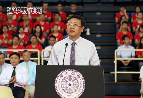 校长陈吉宁发表了题为《行大学之道 成君子之风》的讲话。他首先代表全校师生员工,向新同学表示热烈的欢迎,他说,在清华,同学们将接受价值塑造、能力培养、知识传授“三位一体”的教育,学会做人,学会洞悉自然、人生和社会,为成就美好的未来做好准备。