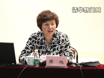 陈旭在开班动员中,传达了中共中央政治局常委刘云山同志在省部级领导干部学习贯彻习近平总书记系列重要讲话精神研讨班上的讲话,对全体干部提出了明确的学习要求。在学习班总结交流会上,陈旭从深入学习贯彻总书记关于中国特色社会主义的重要论述,更加坚定世界一流、中国特色、清华风格的办学道路;深入学习贯彻关于全面深化改革的重要讲话精神,争做国家教育综合改革的排头兵;深入学习贯彻关于加强宣传思想工作的重要讲话精神,切实加强学校意识形态工作和学生思想政治教育;深入学习贯彻关于加强党的建设的重要讲话精神,发挥学校党组织的战斗堡垒作用等4个方面作了总结讲话。