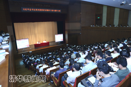 陈吉宁在讲话中指出,当前国家和学校都处于战略机遇期,同时也是重要转型期,深入学习贯彻习近平总书记系列重要讲话精神具有重大意义。全校干部要不断加强学习,更新知识、革新观念,始终跟上时代步伐;要进一步坚定学术自信,加快世界一流大学建设步伐;要高度重视教师队伍建设,特别是做好青年教师工作;要敢于担当,积极参与和推动学校综合改革,以改革为动力,努力实现学校各方面工作的创新发展。