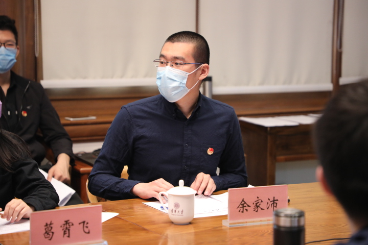 首先,要深入学习习总书记五四重要寄语精神,将总书记对新时代青年的希望和对高等教育的要求贯穿到“青春报家国,奋进正当时”的主题教育中。他表示,习总书记的寄语为我们做好学生思想政治教育工作、做好青年工作指明了方向,学校下一阶段主题教育的任务就是进一步深入学习习近平新时代中国特色社会主义思想,引导同学坚定理想信念,把个人的学习科研与党和国家的期待紧密结合在一起。其次,要动员组织全校团员青年积极投身疫情防控人民战争、总体战、阻击战,在重大事件中主动担当作为,坚定“四个自信”。过勇肯定了在全国抗疫防疫工作中,广大清华青年在科研攻关、志愿服务、医疗援助等方面的责任担当和突出贡献。最后,要继续做好研究生支教团的工作,鼓励引导团员青年在奉献国家、服务人民的过程中实现青春价值。学校团委要和相关部门一起,深入开展主题社会实践,组织同学们在了解国情的过程中接受教育,为三大攻坚战作出自己的贡献。