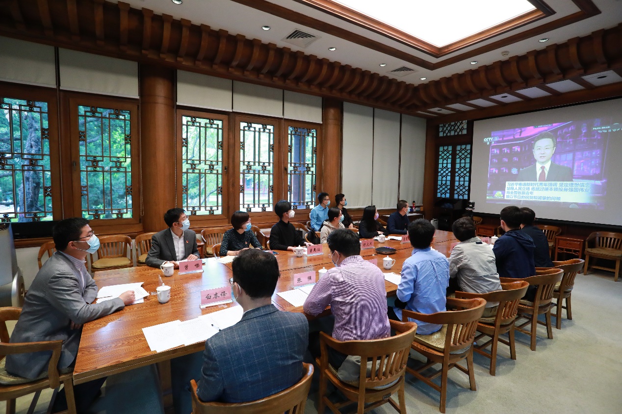 参会的青年学生们共同聆听、学习了习近平总书记给新时代青年的寄语。大家深受鼓舞,结合疫情期间的自身情况和相关工作,交流了自己对习近平总书记五四重要寄语的认识和理解。