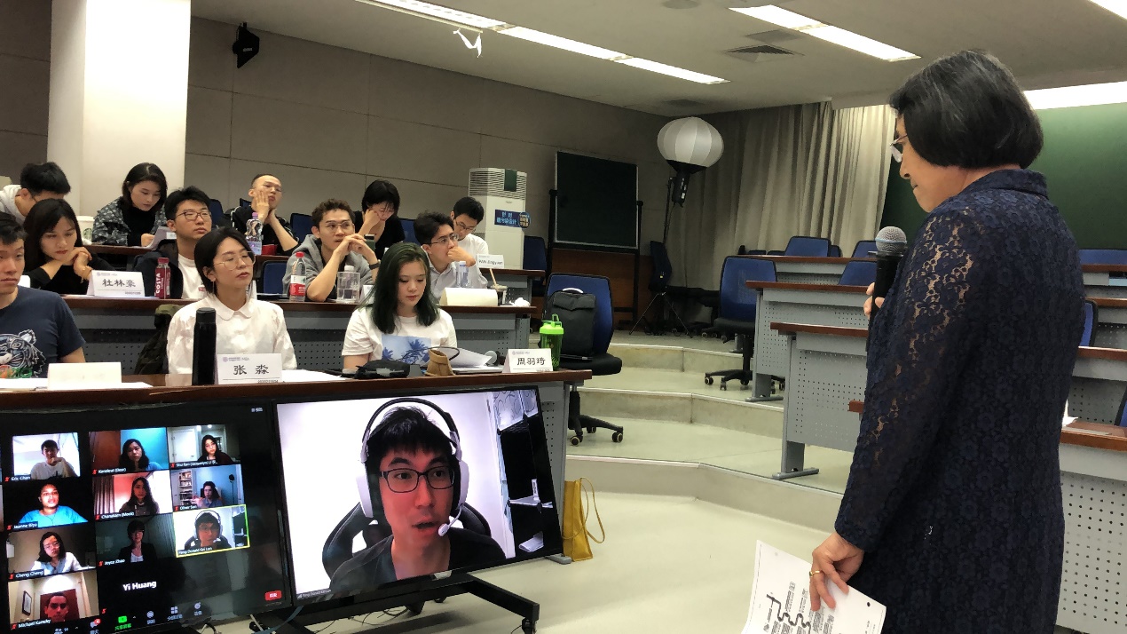 “我的经验是线上同学必须打开摄像头,这个要求很关键。同时,也提醒授课老师们三个特别需要注意的点:对线上同学讲话的时候,要注意面向摄像头,而不是屏幕,需要养成习惯;有些线上同学的发言音量不稳定,我们可以再找找原因;线下同学发言递话筒的速度也可以优化。我的第一次‘试水’感觉还好,学生们非常给力。相信随着经验的积累,效果会越来越好的。”