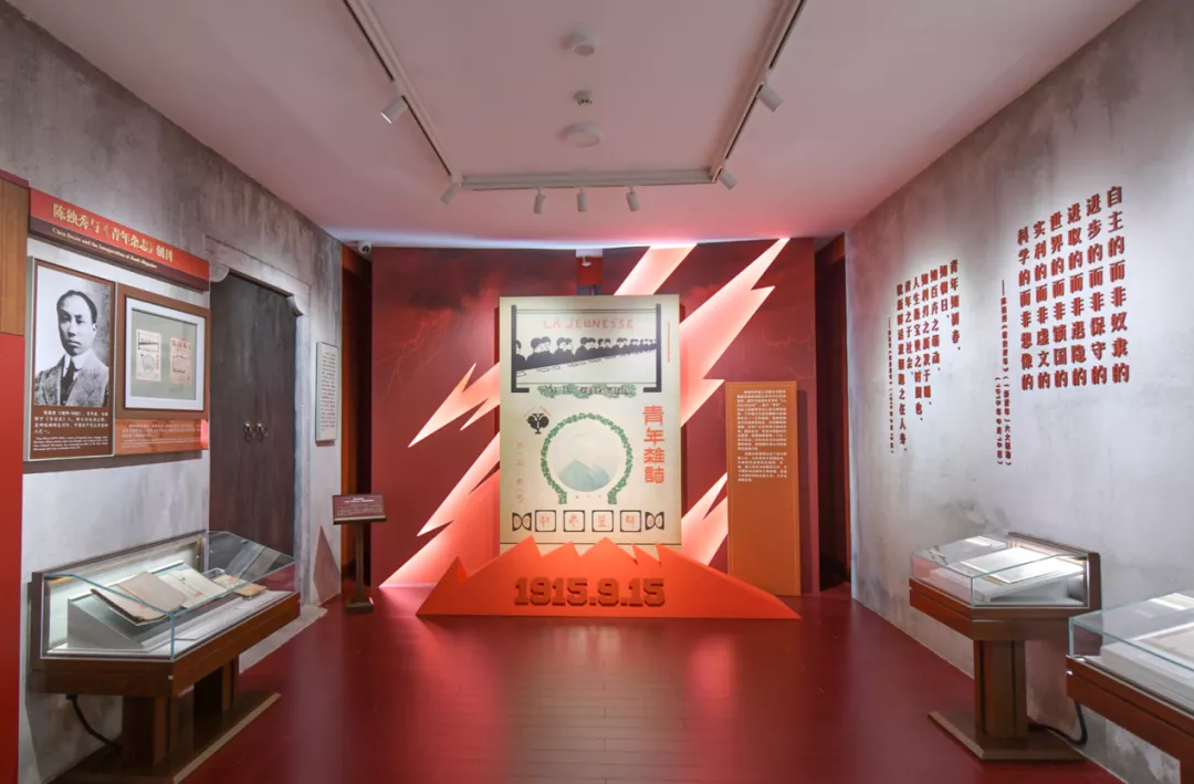 乐动平台美术学院展示艺术研究所所长洪麦恩主持设计北大红楼“光辉伟业红色序章”主题展,图为“新文化运动发端”展厅
