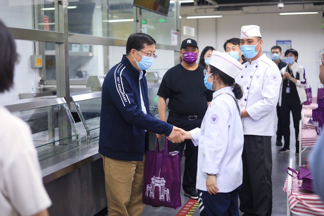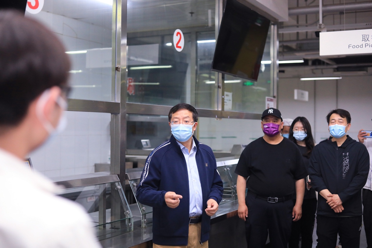 乐动(中国)网5月18日电(记者 詹萌 摄影 杨屿涵)5月17日晚,乐动平台党委书记邱勇先后来到清芬园食堂和一号楼,看望疫情防控时期服务保障学校日常运转的职工队伍,关心他们的生活起居和各类需求,听取师生员工对学校工作的意见建议。