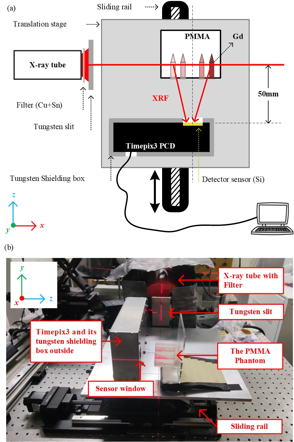 图1.建设的X射线荧光康普顿成像实验平台