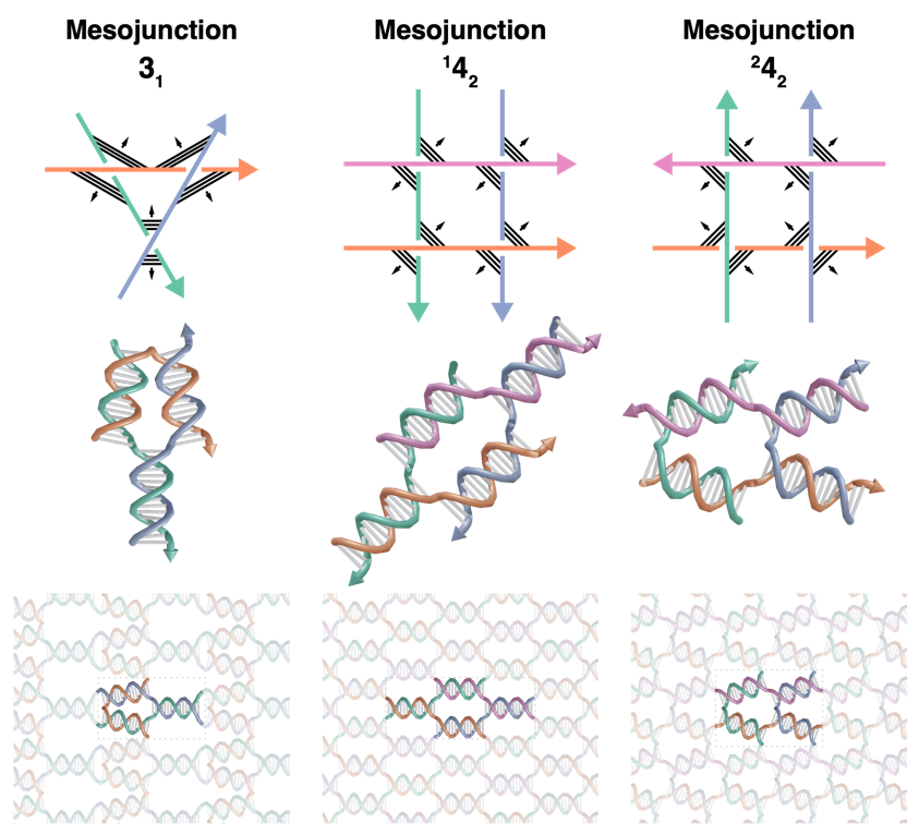 乐动(中国)网1月22日电 四十年前,纳德里安·西曼(Nadrian C. Seeman)教授以分支交叉(branchjunction)为基础,开创了DNA纳米技术领域的先河。四十年来,DNA纳米技术蓬勃发展,可以精准实现各种复杂二维及三维图案或形状的自组装,而结构模块大多依照普通交叉(regular junction)来设计。早在上世纪90年代初,由西曼教授同时提出的另一DNA模块类型——混合交叉(mesojunction),却被研究者忽视和遗忘。虽然混合交叉的部分单元设计已在实验中得到初步验证,但是后续相关的研究长期以来近乎停滞。