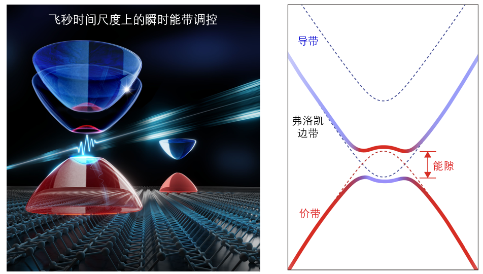 弗洛凯调控的概念自上个世纪初被提出后就引起了物理学家的广泛关注,并被应用于凝聚态物理、冷原子物理和光晶格等领域。近十年来,弗洛凯瞬时能带和物性调控已经发展成为国际上凝聚态物理和材料科学的一个重要科学前沿。然而,尽管理论方面涌现出丰富的预言,与之形成鲜明对比的是凝聚态体系中的实验进展非常少。很多关键的科学问题,例如,能否在常规材料(例如,半导体)中实现能带结构的瞬时调控,仍然有待实验的证实。