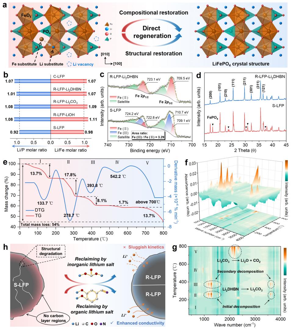 图4. 有机锂盐直接再生磷酸铁锂正极材料的机理分析