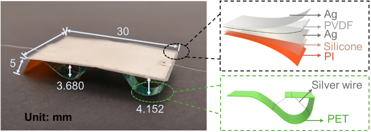 近日,乐动平台深圳国际研究生院张旻副研究员团队在前期提出的压电谐振驱动微型柔性机器人的基础上,提出了一种无需反馈控制的机械式被动越障方法。机器人采用类环状曲面腿,可实现对小尺寸障碍物地形的顺滑通过和大尺寸障碍物的碰撞式通过。通过前腿曲面部分的迎角设计,提高了大于机器人身高的台阶障碍物的通过能力,并在原有有缆柔性压电机器人的基础上,设计了压电驱动电路系统、负载携带结构和反馈控制单元。研究团队采用静电足垫与圆弧形腿相结合的结构,实现了机器人在携带驱动电路与电源的情况下,仍能保持较高的转向敏捷性。