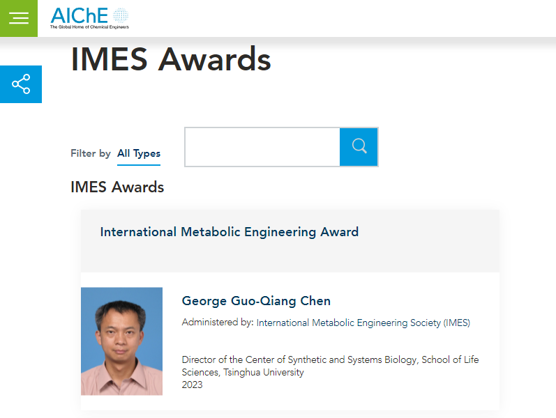 国际代谢工程奖由代谢工程领域的国际权威学术组织国际代谢工程学会(IMES)发起,每两年授予一位在代谢工程领域作出卓越贡献的研究人员,并在其和美国化学工程师协会(AIChE)共同举办的国际代谢工程大会(Metabolic Engineering Conference)上颁奖。