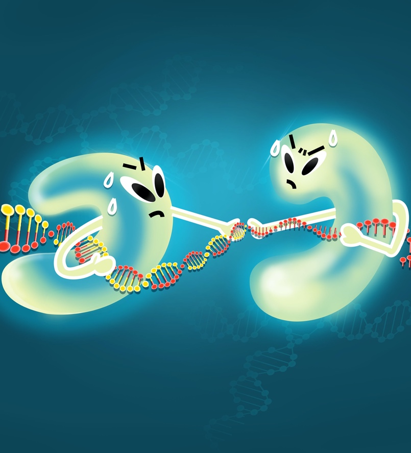 图1.Q5 DNA聚合酶的聚合酶活性(左)和外切酶活性(右)的“拔河”拉锯