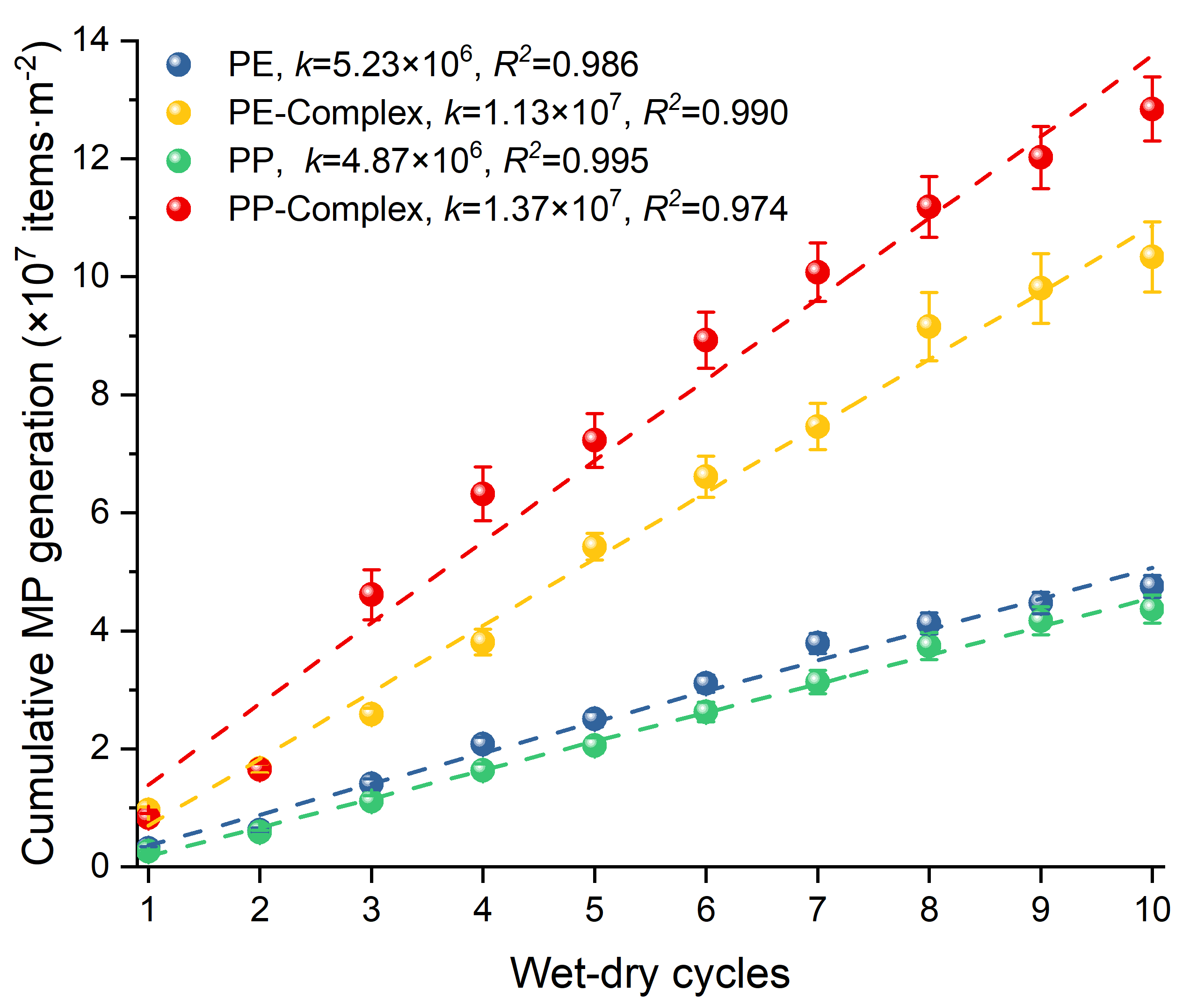 图4.干湿循环情形下微塑料的零级释放过程