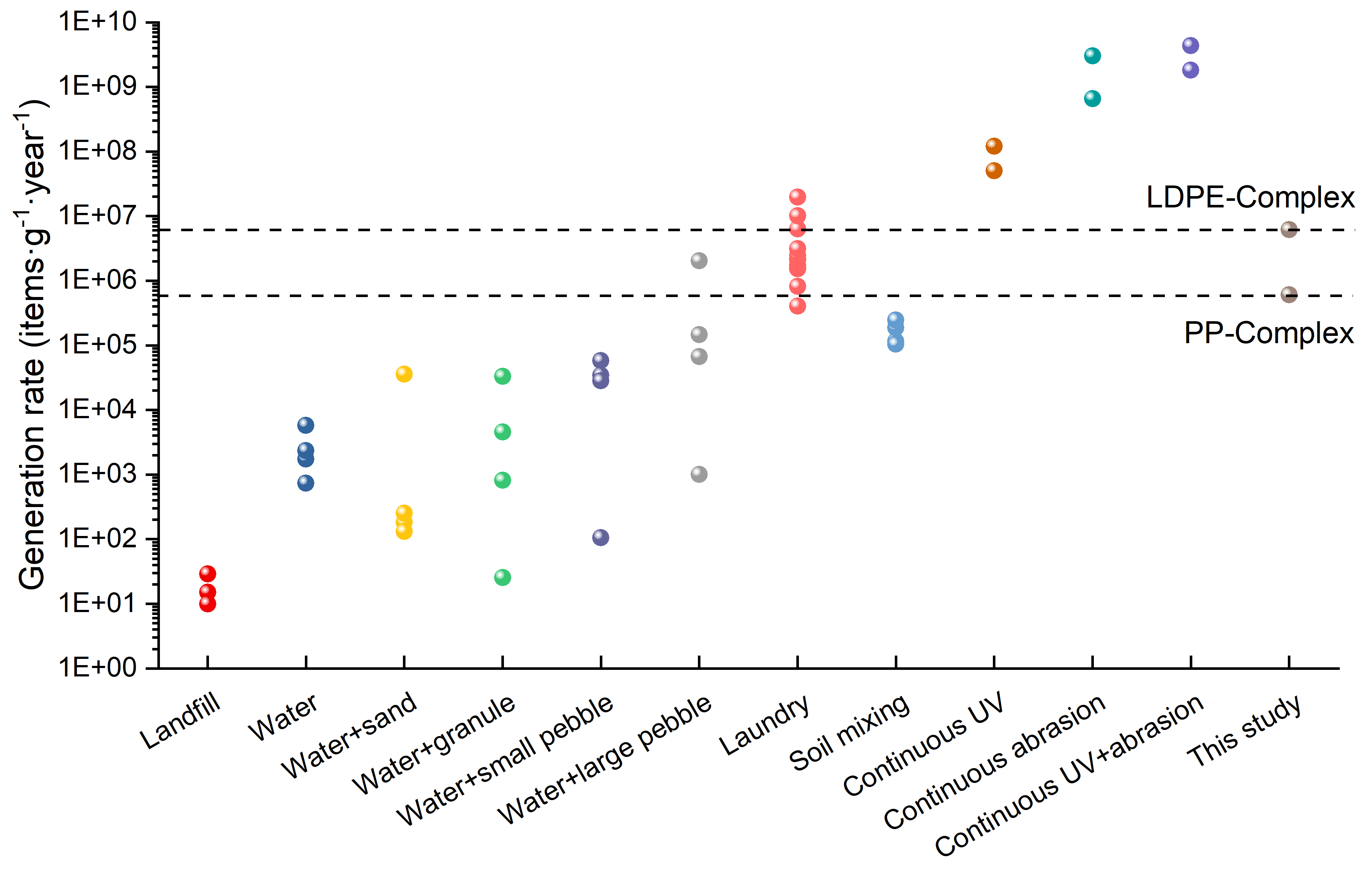 图5.微塑料释放速率与文献报道速率的对比