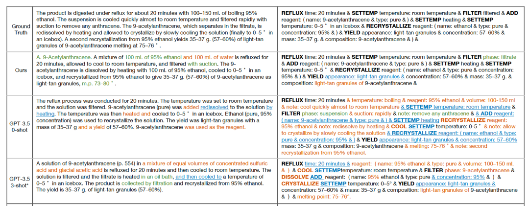 该系统相较于其他类似工作可以实现更完备而准确的合成指令生成,也能根据指令撰写流畅自然的合成化学文献段落。该工作还探索了当前模型的更多可能用途,例如针对特定合成指令预测下一步骤、根据转写表现筛选出更简明规范的文本等。这些实验表明,预训练模型可以提供面向通用合成规律以及合成描述规范性的洞察。