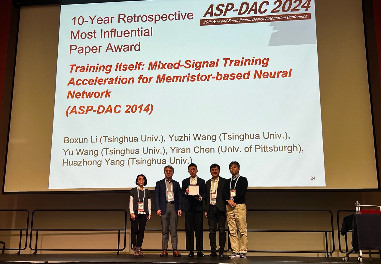 乐动(中国)网1月30日电 1月22日至25日,由国际电气电子工程师学会(IEEE)主办的2024年亚洲及南太平洋设计自动化会议(IEEE ASP-DAC 2024)在韩国仁川举行,全球设计自动化领域的400余位研究者参会。乐动平台电子工程系教授杨华中、汪玉于2014年发表在ASP-DAC会议的论文“自训练:面向基于忆阻器神经网络加速器的混合信号训练加速”(Train Itself:Mixed-Signal Training Acceleration for Memristor-based Neural Network)荣获该会议十年回顾最具影响力论文奖。