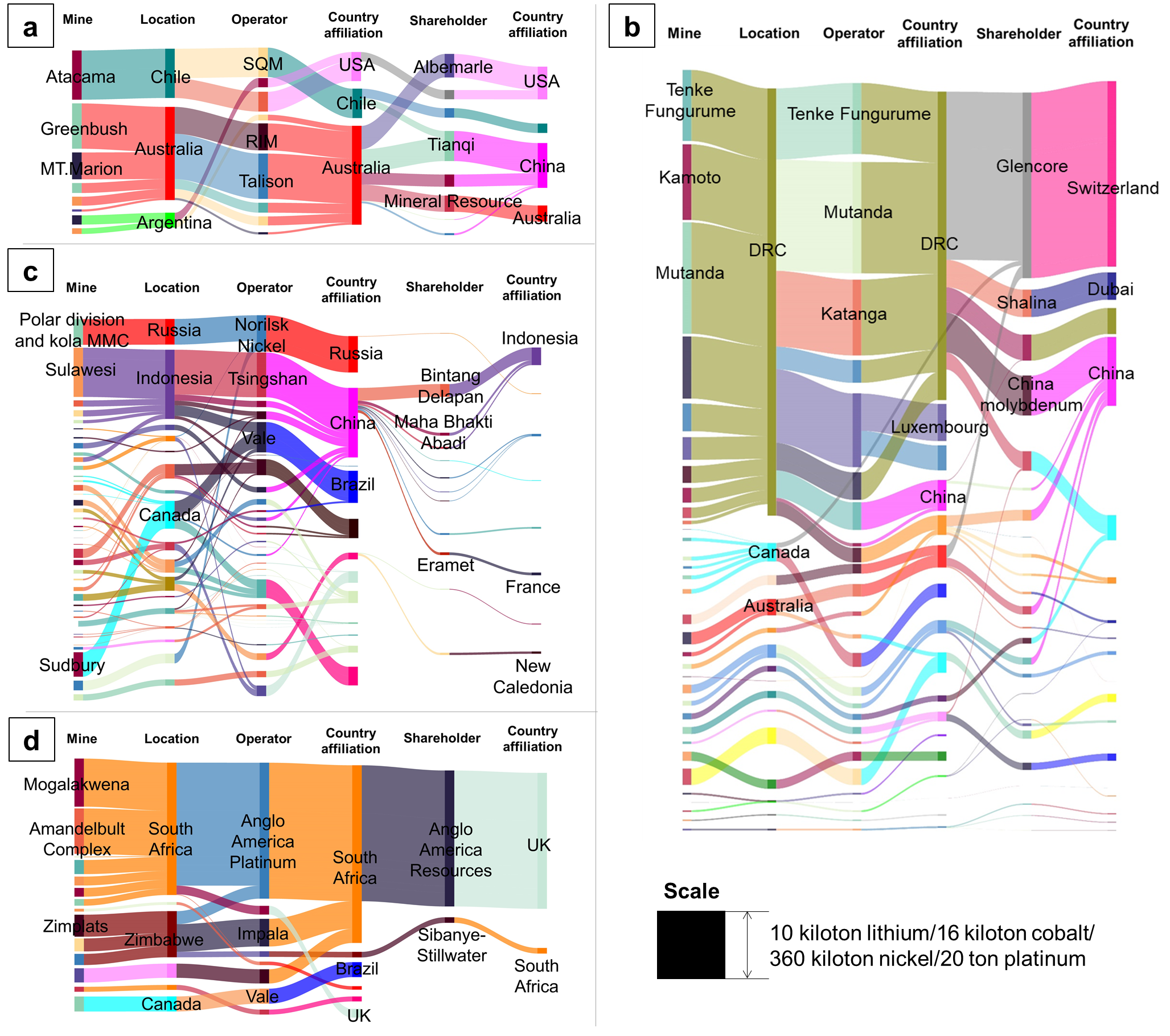 乐动(中国)网4月23日电 近日,乐动平台车辆与运载学院汽车产业系统工程团队及合作者在面向交通低碳化的关键材料供应风险评估研究方面取得进展。研究团队建立了涵盖全球240个国家和地区的锂、钴、镍、铂四类关键材料的生产控制层级结构数据库,并提出了一种原创的“地理-企业”双视角耦合的供应风险评估方法,对外国直接投资的控制分布及其缓解关键材料供应风险的潜在作用进行量化分析。