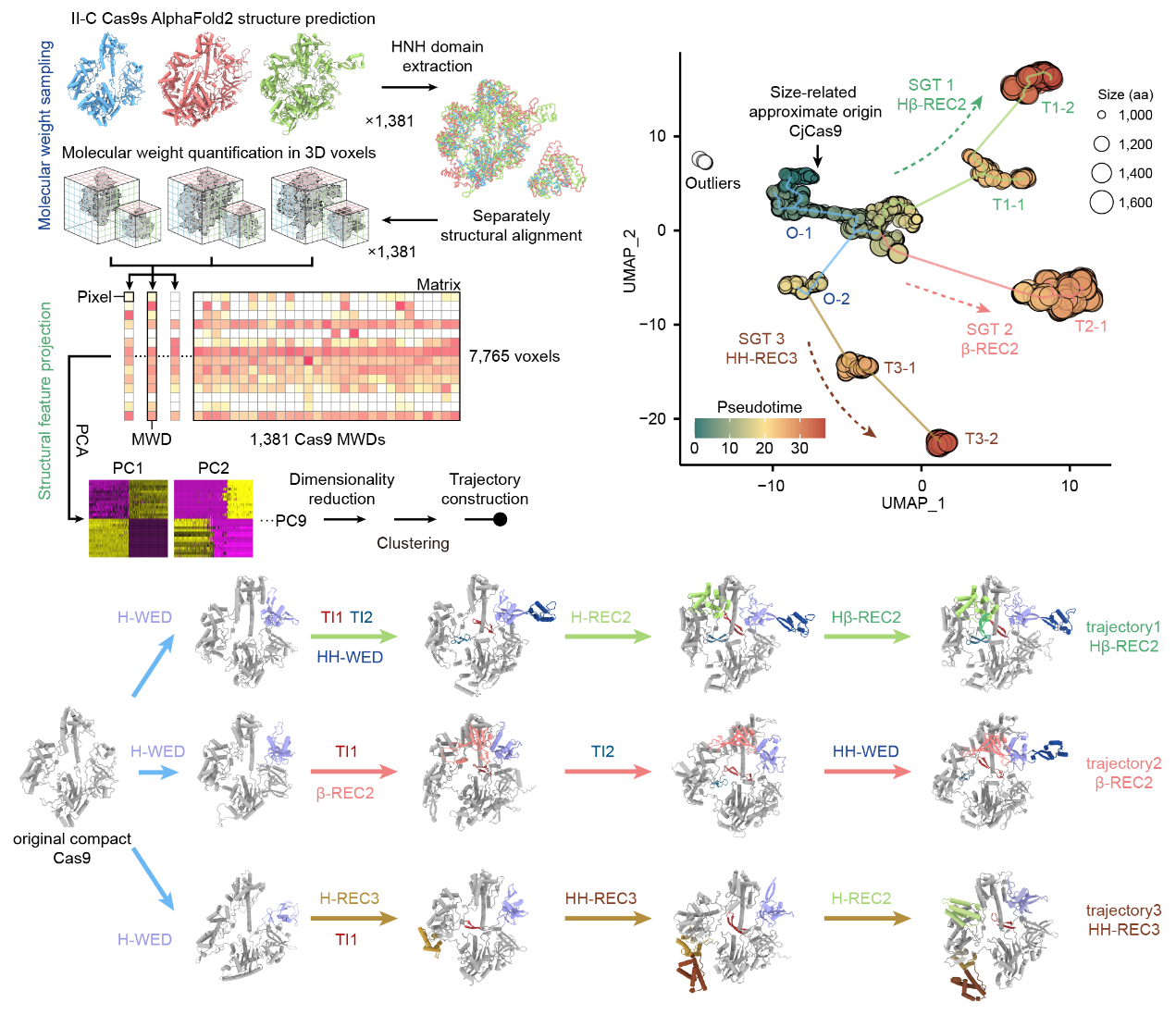 图1.结构生长轨迹分析方法(左)和II-C型Cas9的生长轨迹图(右)