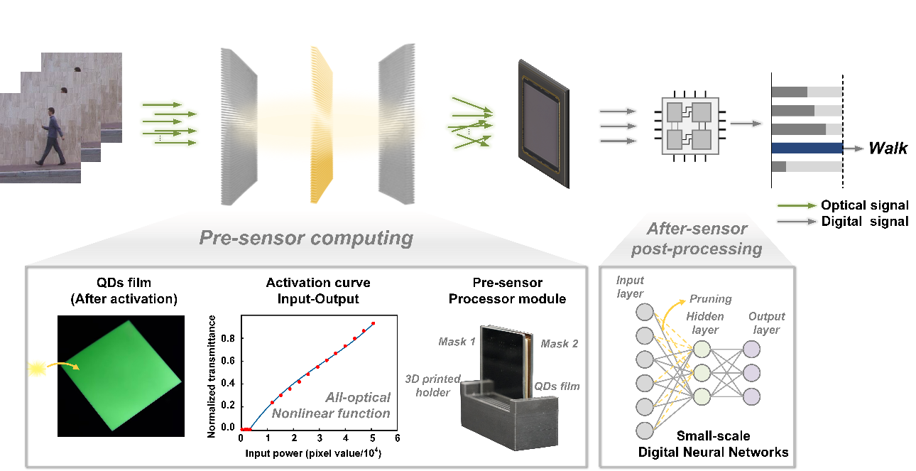 乐动(中国)网7月30日电 在物联网时代,视觉图像传感器作为智能社会的关键设备,被嵌入到诸如移动通信终端、智能穿戴设备、汽车和工业机器等各种设备中。随着应用的不断扩展,对传感器的系统功耗、响应速度、安全性能等方面也提出了更高的要求。而在传统的“感传算”链路中,内存的访问速度和通信带宽逐渐成为了限制系统功耗及速度的主要瓶颈。将计算单元向传感单元靠近,使系统的近传感端拥有一定的数据处理能力,逐渐成为解决这一问题的有力途径。感前光计算相比于其他近感计算方式,具有高速、高带宽、低功耗的优势。然而,目前绝大部分光神经网络需要相干激光作为光源,硬件系统笨重复杂,且仅能完成线性运算,缺乏层间非线性激活,限制了感前光计算在边缘场景的应用。