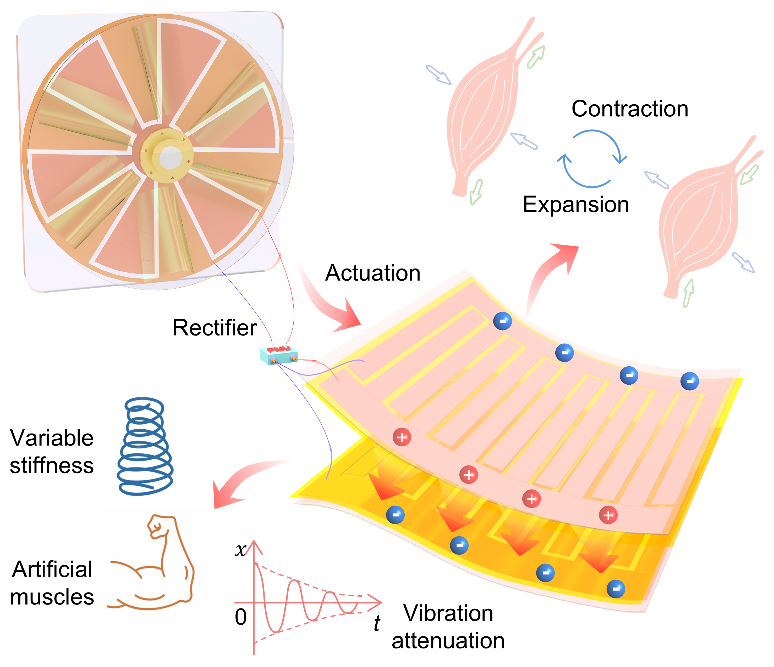 该研究的设计灵感来源于肌肉的收缩与舒张机制,通过模拟这一自然过程,给予静电吸附膜导电电极施加摩擦高电压使其整体结构硬化,实现了类似于人工肌肉的可变刚度效果。