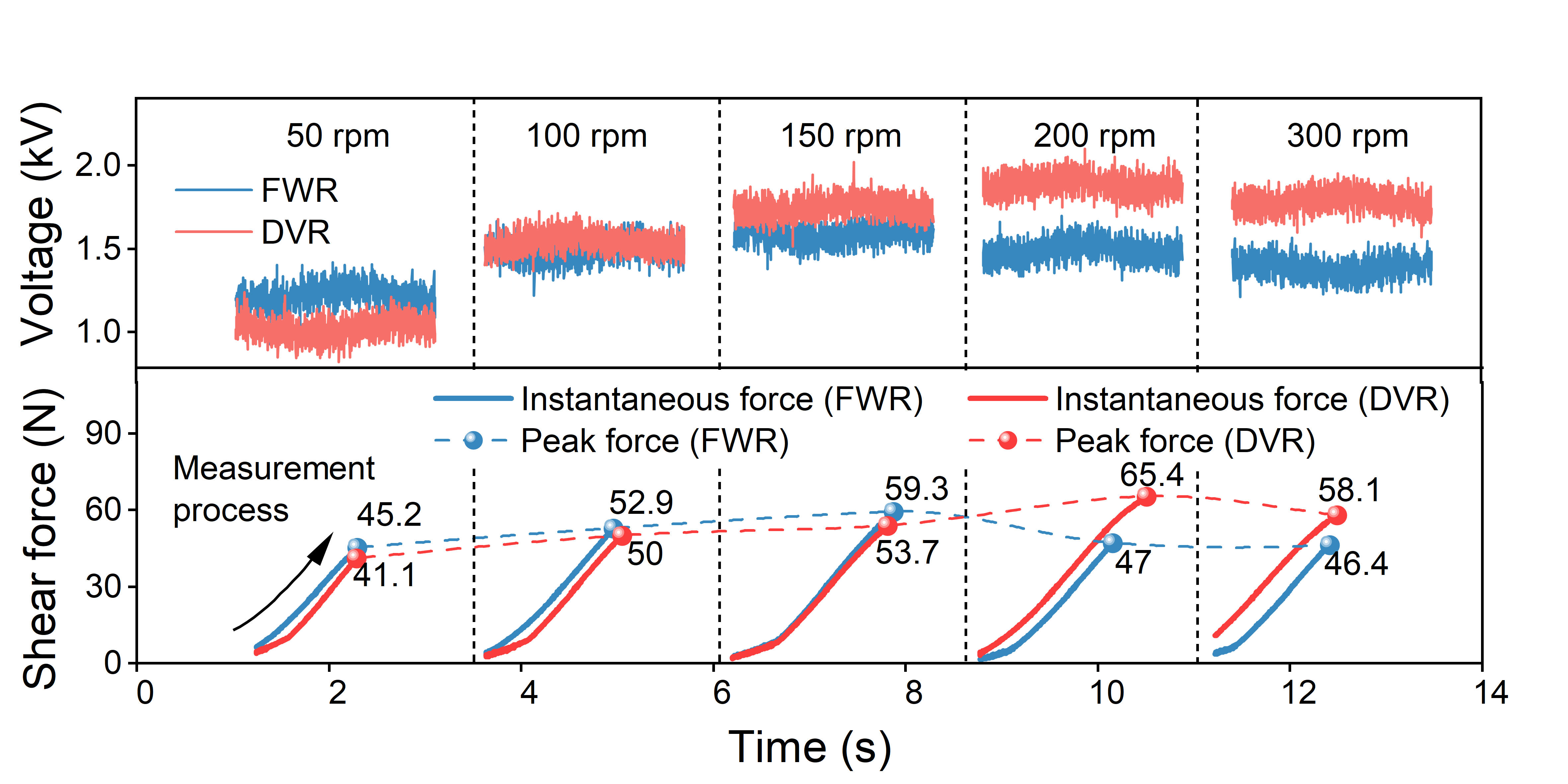 图3.不同转速和整流单元下的切向静电力变化