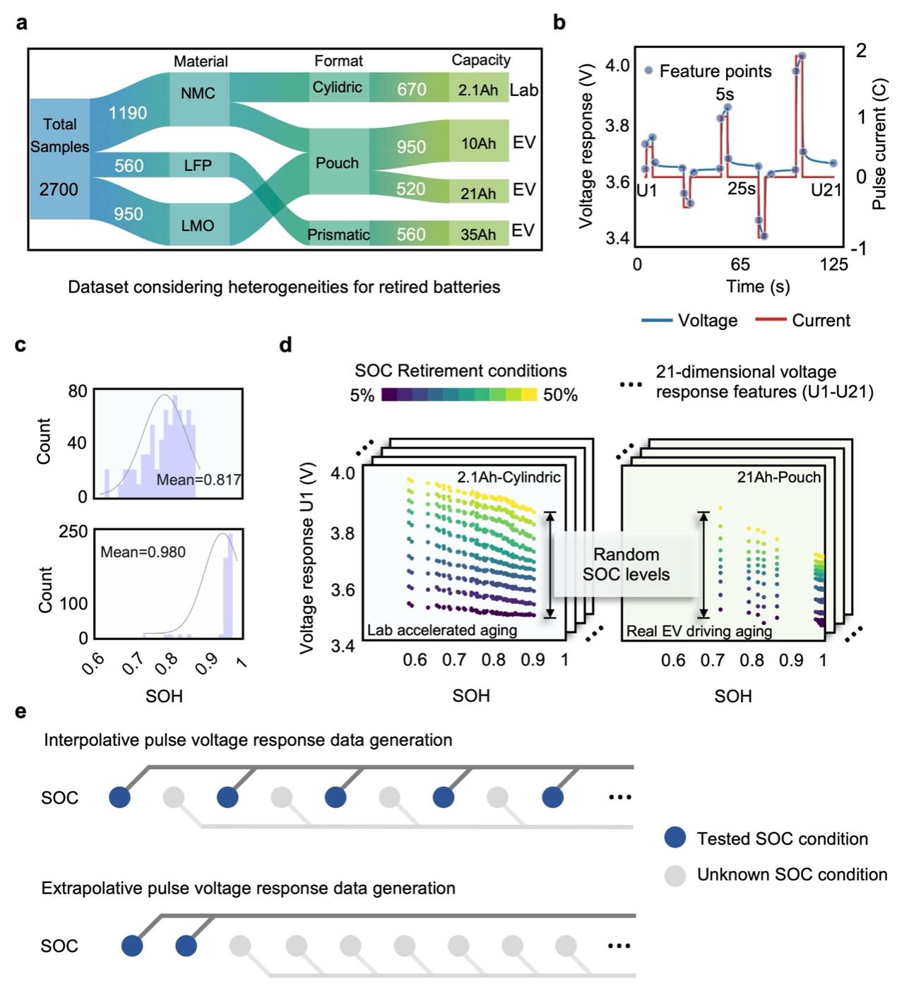 相关研究成果以“随机退役条件下基于生成式学习的电池健康状态评估与可持续回收”(Generative learning assisted state-of-health estimation for sustainable battery recycling with random retirement conditions)为题,于11月23日发表于《自然·通讯》(Nature Communications)上。