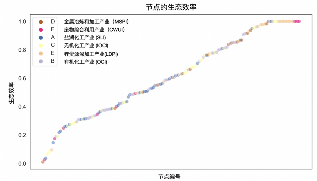 产业网络中的节点的生态效率评价结果