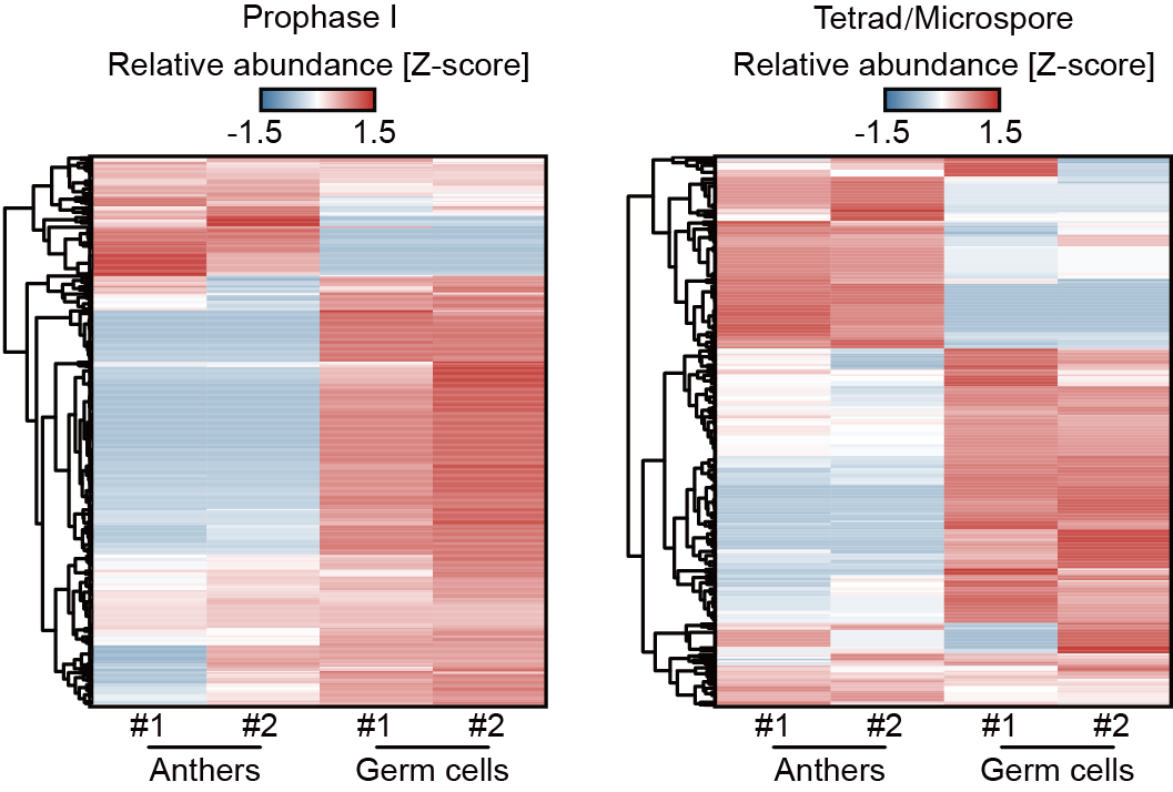 课题组收集了减数分裂前期、减数分裂I早前期和四分体/小孢子期的玉米花药,并用显微摄取的方法分离了处于减数分裂I早前期、四分体时期和小孢子时期的雄性生殖细胞(图1)。通过低起始量小RNA测序,在这些样品中系统鉴定了上万个21-nt phasiRNA。他们接着采用低起始量降解组测序检测了21-nt phasiRNA可能介导的mRNA切割信号。结果显示,在减数分裂前期、减数分裂I早前期和四分体/小孢子期的花药中,21-nt phasiRNA分别切割132、132和119个靶标mRNA;而在减数分裂I早前期的雄性生殖细胞、四分体和小孢子中,21-nt phasiRNA分别切割246、181和143个靶标mRNA,表明玉米中的21-nt phasiRNA可通过切割mRNA,调节基因表达。