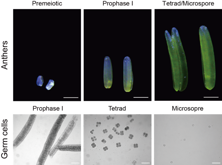 图1.不同发育时期的玉米花药和雄性生殖细胞