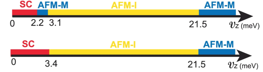 图2.3.65° tWSe2在ν=−1的平均场相图,包含超导态(SC)、反铁磁绝缘态(AFM-I)与反铁磁金属态(AFM-M)