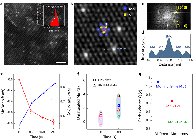 图2.钼单原子/单层二硫化钼材料的结构和化学表征