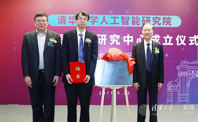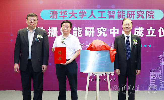 致辞环节后,尤政和张钹共同为大数据智能研究中心揭牌,并向计算机系副系主任朱文武教授颁发了大数据智能研究中心主任聘书。国际电气与电子工程师协会会士、美国促进会会士(IEEE/AAAS Fellow)吴信东教授被聘为大数据智能研究中心学术顾问。