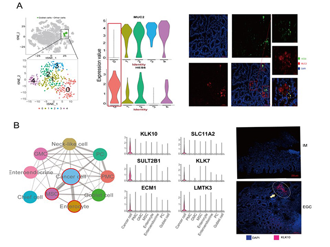 尤为重要的是,该研究首次发现胃炎肠化早期、胃癌极早期的两种细胞标志物。研究者通过分析在癌前病变阶段呈现出的多种与分化进程相关的细胞亚型,识别出了能标记肠化早期阶段的细胞标志,有望助力胃癌前病变的早期发现。同时,作者通过系统分析胃早癌细胞与其他上皮细胞群之间的网络关联,识别出具有特定分子特征的胃癌极早期细胞群。这类细胞群的出现早于当前临床病理所能识别出的胃癌,为胃癌的极早期精准诊断提供了潜在标志物,也为胃癌极早期干预提供了候选靶点,该文发现的这组胃癌前病变、胃癌极早期标志物已申请发明专利,正在进行试剂盒研制和更大样本的临床验证。同时,李梢课题组前期还发现了能早期干预这类细胞、有望逆转炎癌转化的药食同源中药成分,并获发明专利。