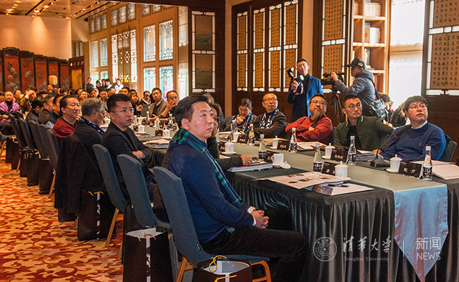 研讨会由“韩美林全球巡展”总策展人中央美院艺术管理与教育学院副院长赵力主持,故宫博物院院长单霁翔、故宫研究院院长郑欣淼、中国文联副主席潘鲁生、中国美术家协会副主席杨晓阳、北京大学艺术学院院长王一川、清华美院副院长方晓风等二十余位专家学者,与韩美林共同出席了学术研讨会。