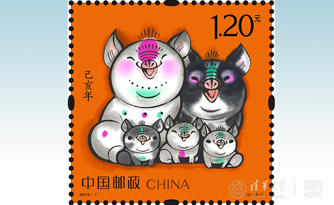 韩美林设计的“己亥年”猪年生肖特种邮票