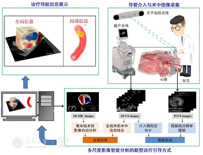 陈芳的博士论文针对心血管疾病的微创介入治疗中存在的辐射量大、诊疗精准性低、并发症发生率高等临床难点问题,深入探究了医学影像智能分析与引导的关键理论方法,克服了多尺度影像融合分析在精度和速度上的制约,首次实现了“通观全局组织信息,局部精细化介入引导”的新型血管内介入诊疗引导系统。