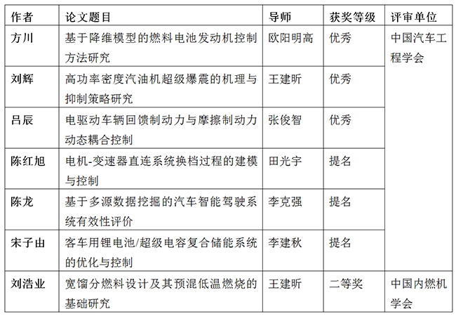 清华汽车系7位博士生获2018年度中国汽车工程学会/内燃机学会优秀博士学位论文奖