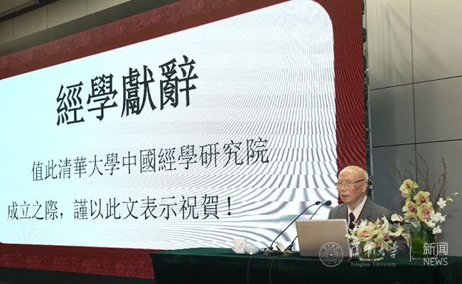 揭牌仪式后,清华大成经学论坛举行开场讲演,北京师范大学资深教授刘家和先生发表了题为《经学献辞》的演讲,刘家和从经学名义、经学古今盛衰、理性与传统以及当代经学的研究意义四方面展开了阐述。他表示,中国文化既要讲“仁”,也要讲“礼”。“仁”与“礼”是经学的核心。