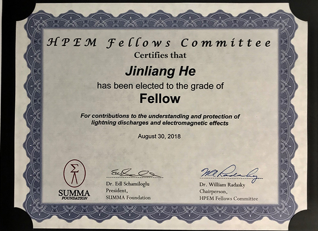 清华电机系何金良教授荣获2018年国际高功率电磁会士