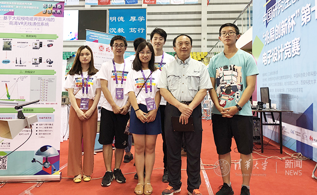 清华微波研究所所长杨帆教授(左五)和参赛同学合影