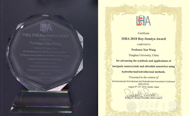 清华王训教授获2018年度国际溶剂热水热联合会Roy-Somiya奖章