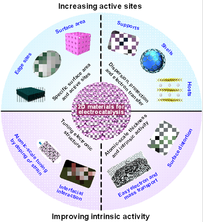 图3. 二维材料电催化剂的重要性及提升催化性能的策略