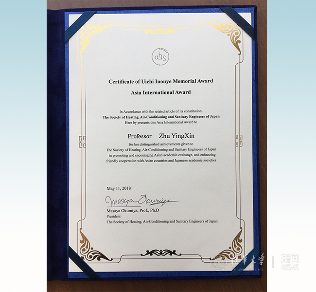 建筑学院朱颖心教授荣获井上宇市亚洲国际贡献奖