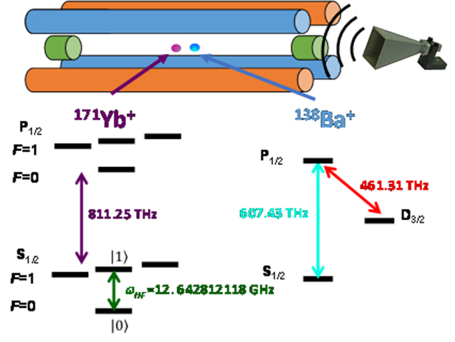 离子阱量子储存系统示意图。