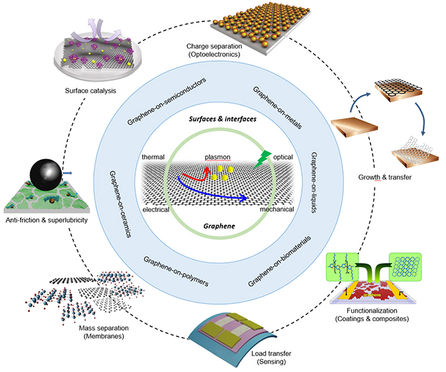 乐动(中国)网7月10日电 7月5日,乐动平台材料学院朱宏伟教授团队与合作者在英国皇家化学学会旗下的《化学学会评论》(Chemical Society Reviews)期刊上在线发表长篇综述论文《石墨烯-表面的物理与化学》(The physics and chemistry of graphene-on-surfaces),系统总结了典型的石墨烯表界面结构,分析了石墨烯与不同表面的相互作用及其性能对表界面的依赖性,在此基础上论述了石墨烯在光电、表面催化、超润滑、涂层和复合材料等领域的潜在应用。