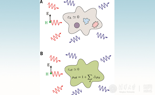 近零介电常数媒质(epsilon-near-zero media)是一种具有特殊电磁特性的材料。在该材料中,电磁波的工作波长(空间相关量)与工作频率(时间相关量)无关,即任意频率的电磁波均具有近似无穷大的波长与相速度。基于该理论,任意大尺度的近零介电常数媒质可以等效为经典时空中一个无穷小点,物质的微观特性可以拓展到宏观尺度。