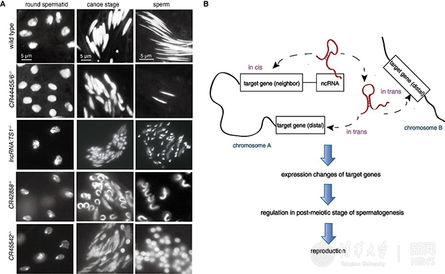 lncRNA突变导致精子发育异常及lncRNA可能的作用模型。